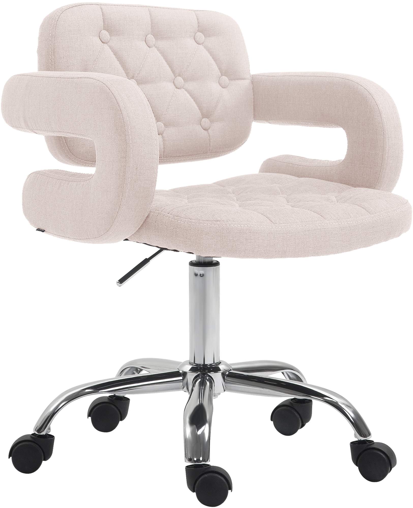 Cu cotiere curbate și un spătar pentru zona lombară, aceasta oferă un suport confortabil, în special pentru zona lombară. Scaunul stă pe o bază metalică robustă cu aspect cromat. Este echipat cu roți cu rulare lină care sunt potrivite pentru covoare și puteți dura.