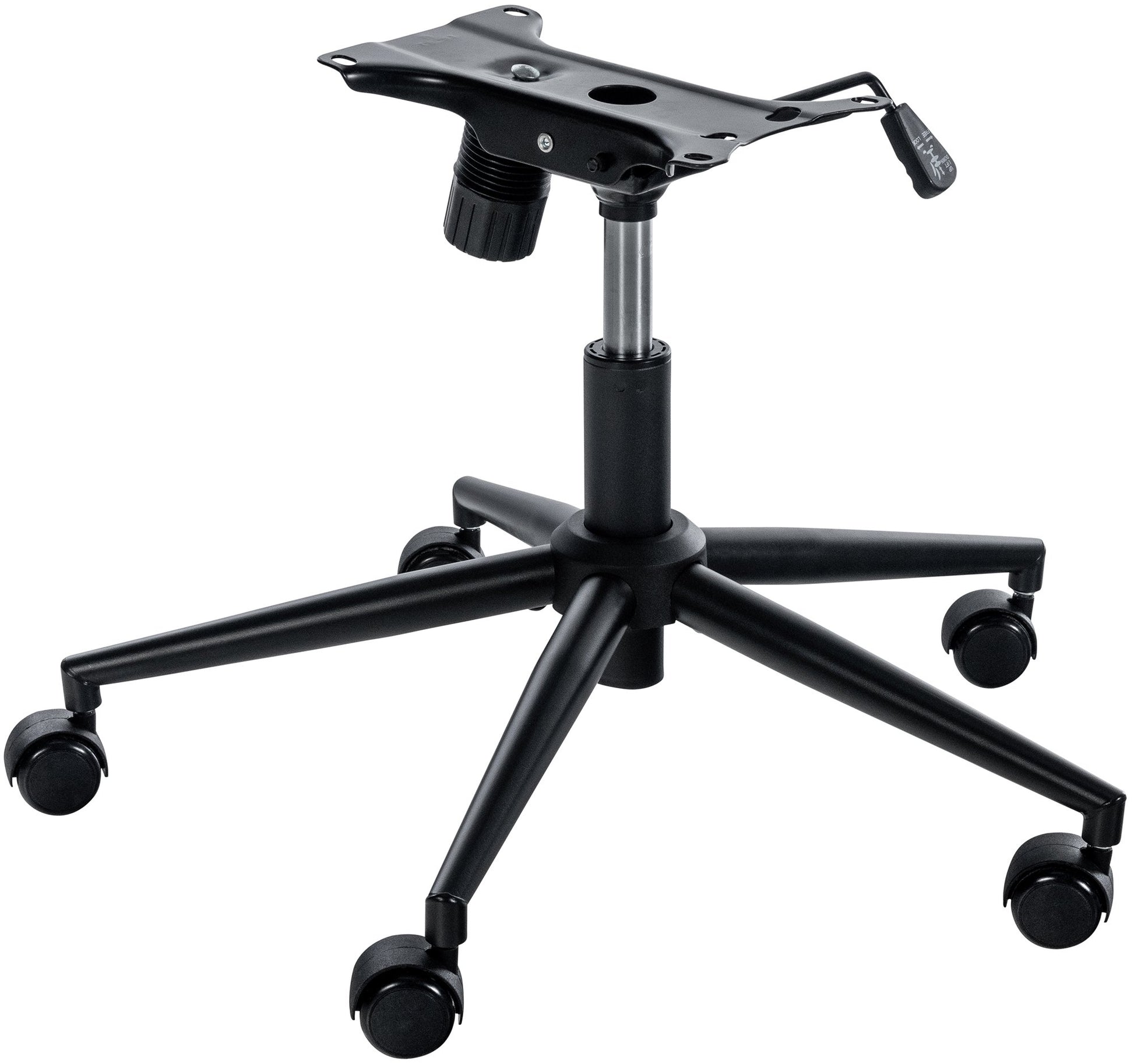 Cu acest cadru, vă permitem să vă reparați scaunul de birou sau să vă oferiți o nouă viață. Dacă rama scaunului dvs. de birou este defectă sau zgâriată și, prin urmare, nu mai sunteți mulțumit de funcție sau aspectul scaunului dvs. pivotant, nu trebuie să înlocuiți imediat scaunul dvs. de birou cu unul nou, deoarece această ramă poate fi instalată și utilizată universal pentru scaune cu dimensiunile respective. Cadrul are 5 rotițe cu rulare lină, este reglabil pe înălțime și este echipat cu o funcție de balansare.