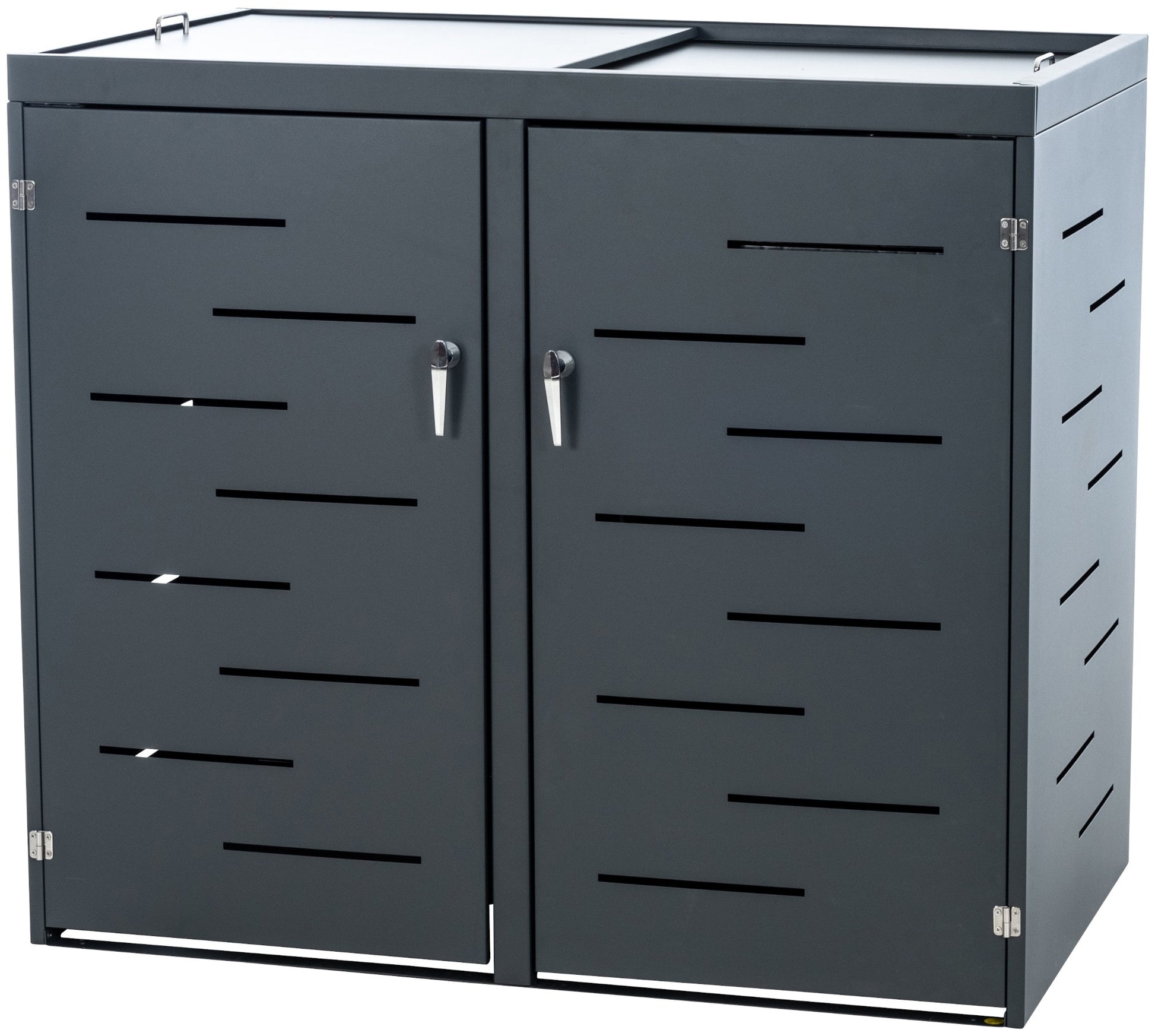 În plus față de aspectul său modern, cutia pentru coșuri de gunoi are caracteristici deosebite de avantajoase. În primul rând, este deosebit de ușor de manevrat. Coșurile de gunoi pot fi scoase prin intermediul ușilor blocabile. Cu toate acestea, acest lucru nu este necesar pentru a umple pubele, deoarece poate glisante din partea superioară oferă acces ușor la pubele.