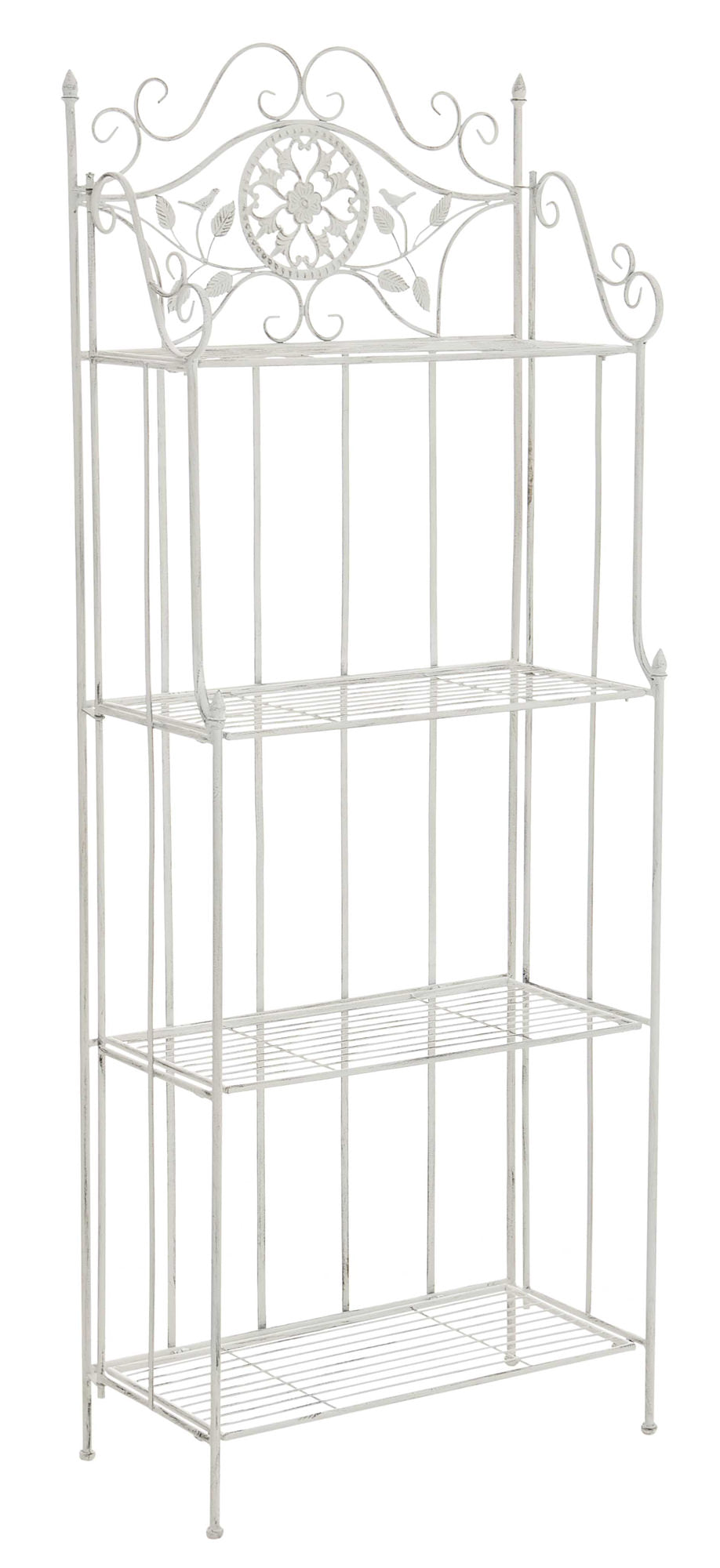 Etajeră în picioare Flora adaugă un aspect romantic oricărei camere! Acest raft filigranat este proiectat cu multe ornamente decorative și surprinde prin stabilitatea și durabilitatea sa, în ciuda aspectului său delicat. Este fabricat din fier tubular de înaltă calitate, care este, de asemenea, acoperit cu pulbere, ceea ce îl face un produs absolut de înaltă calitate. Dar raftul are și mai multe de oferit: Poate fi pliat dacă este necesar, ceea ce îl face ușor de depozitat și transportat. Produsul se află în ambalajul original și este ușor de asamblat, fără decorațiuni.