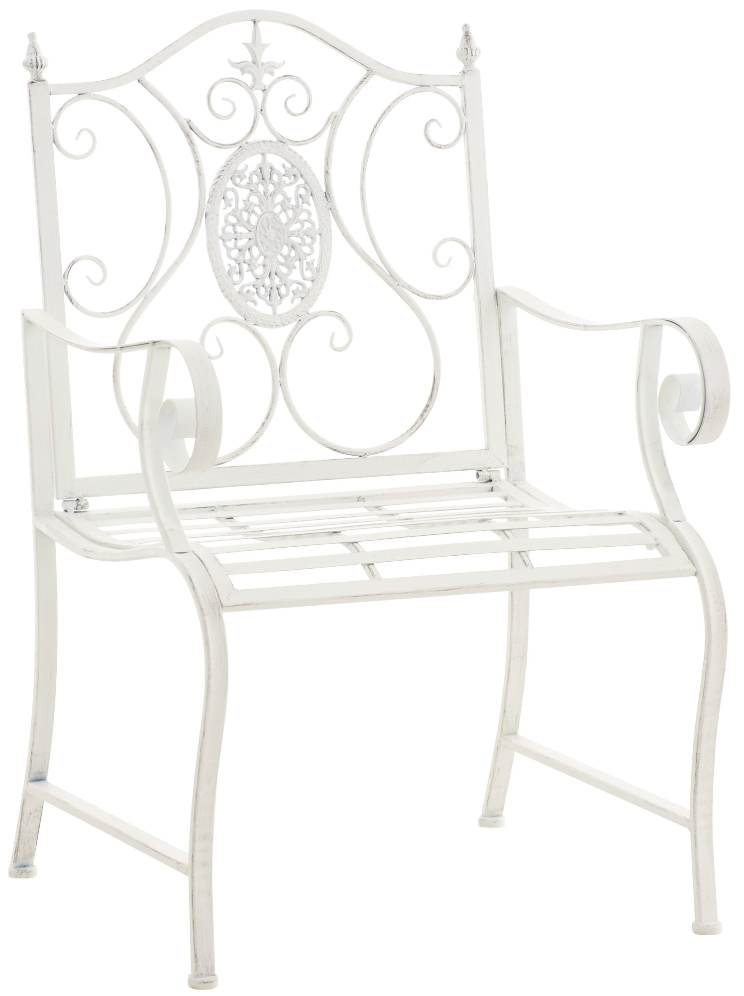Făcut din fier lăcuit, scaunul de grădină este protejat de elemente, făcându-l rezistent la intemperii. Scaunul din fier este ușor de întreținut și poate fi curățat cu o cârpă umedă și detergent ușor. Suprafața scaunului de grădină este finisată cu o patină frumoasă pentru a se potrivi cu decorațiunile atractive.